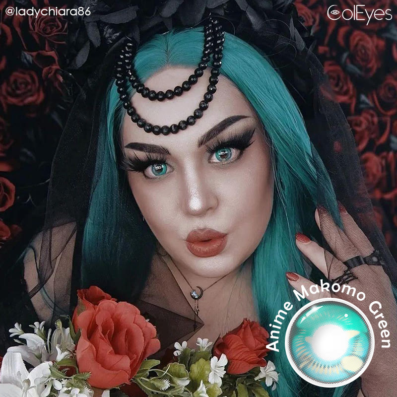 Coleyes Anime Makomo Grüne Jahreslinsen mit Sehstärke für Cosplay