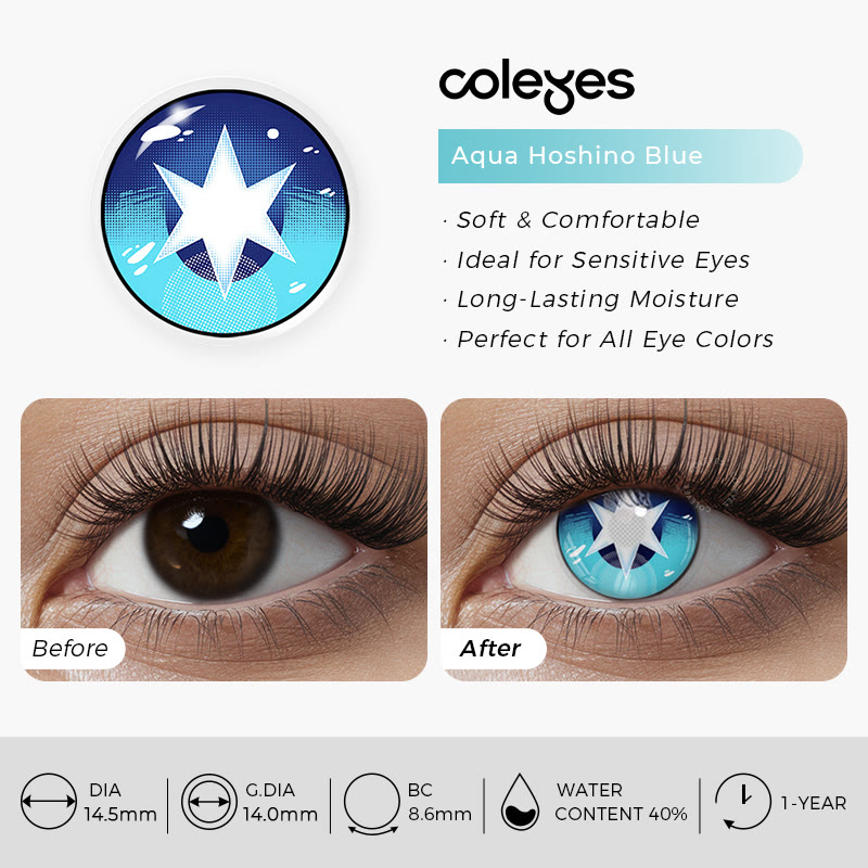 Coleyes Aqua Hoshino Blaue jährliche Cosplay-Farbkontaktlinsen