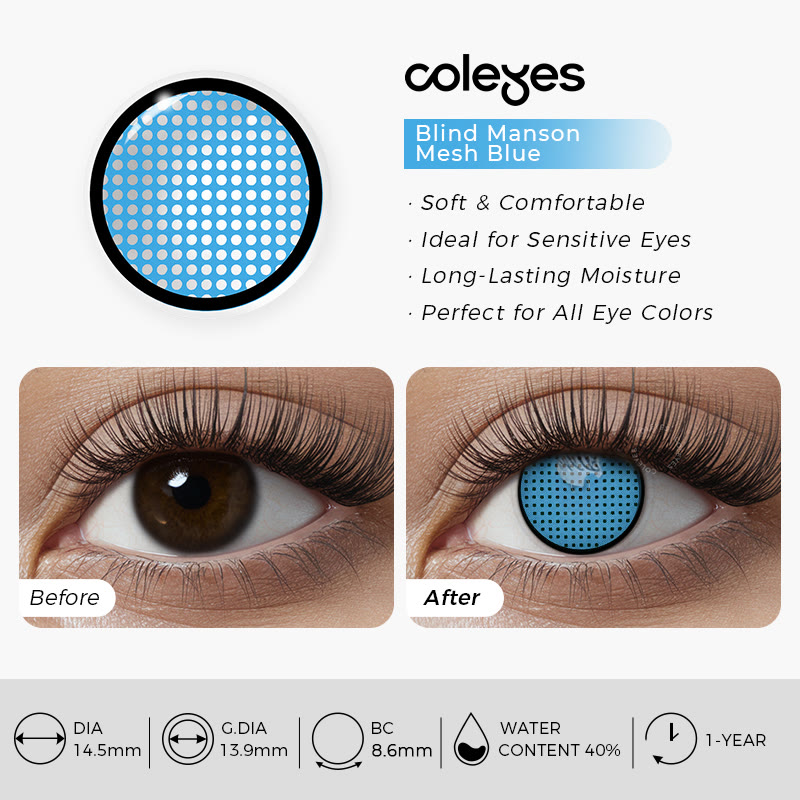 Coleyes Blind Manson Mesh Blau Jährliche Cosplay Farbige Kontaktlinsen