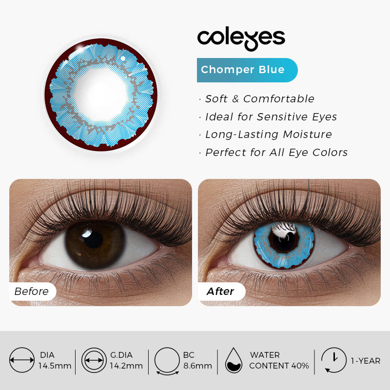Coleyes Chomper Blaue Jahreskontaktlinsen mit Sehstärke für Cosplay