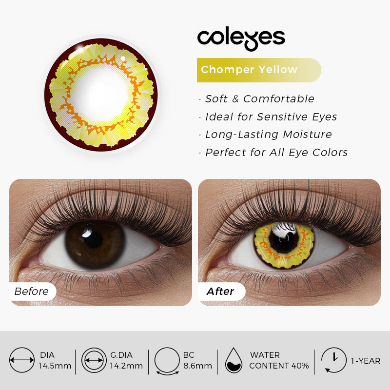 Coleyes Chomper Gelbe Jahreskontaktlinsen mit Sehstärke für Cosplay