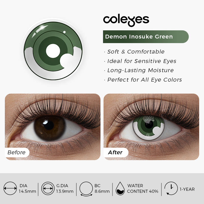 Coleyes Dämon Inosuke Grüne Jahreskontaktlinsen mit Sehstärke für Cosplay