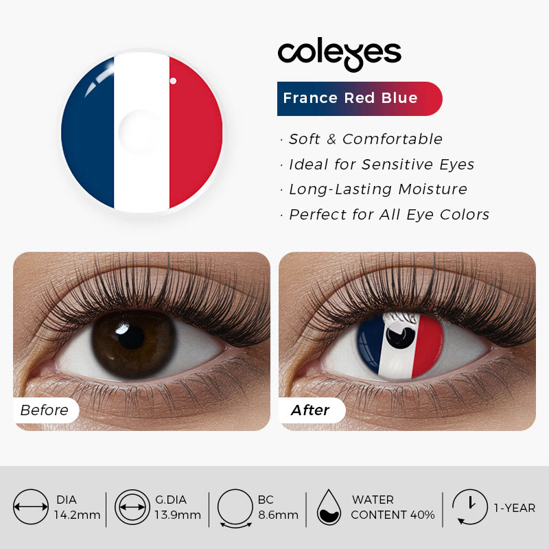 Coleyes France Rot-Blaue Jahreskontaktlinsen für Cosplay mit Sehstärke