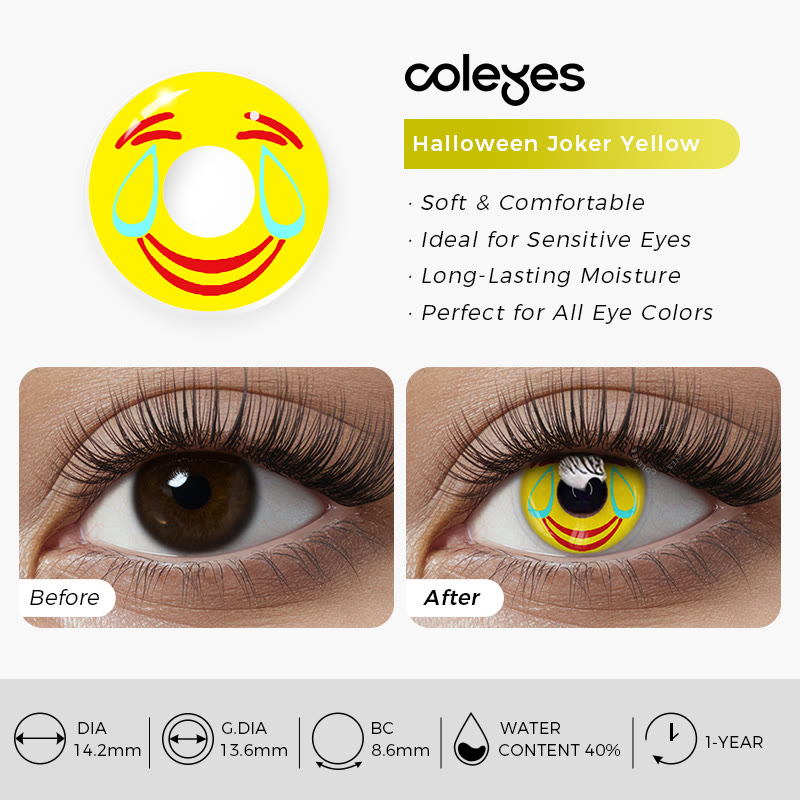 Coleyes Halloween Joker Gelbe Jahreskontaktlinsen mit Sehstärke für Cosplay