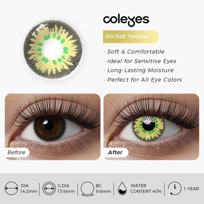 Coleyes – Orchideengelbe, farbige Cosplay-Kontaktlinsen mit Sehstärke für das Jahr