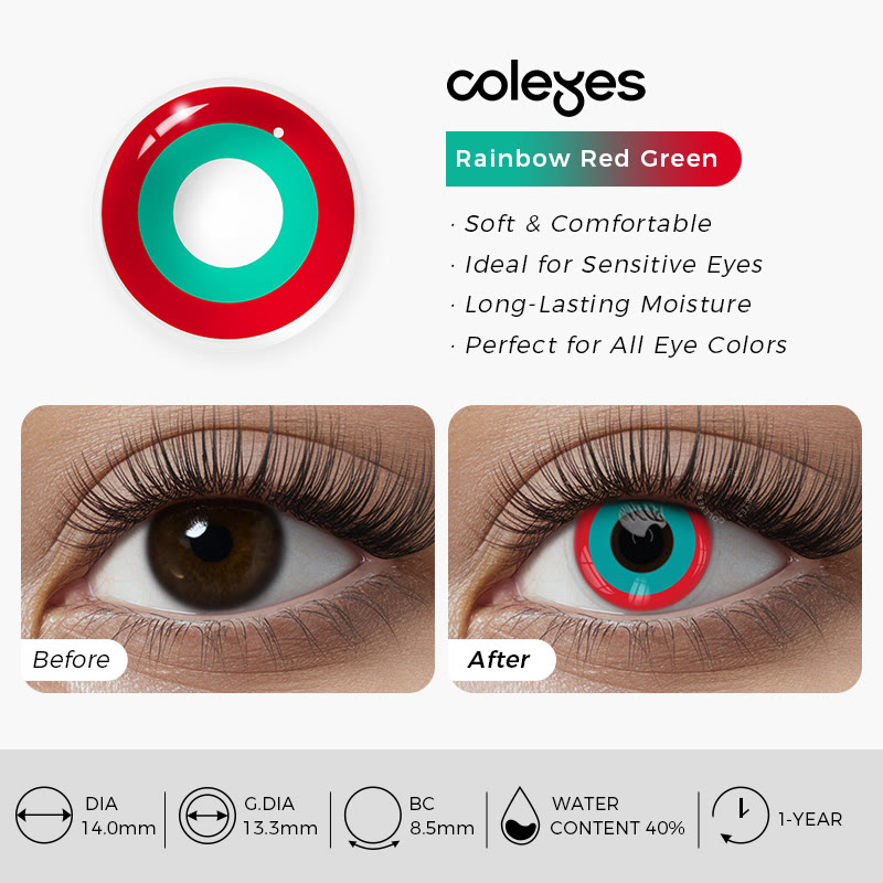 Coleyes Regenbogen Rot Grün Rebecca Cyberpunk Jahreslinsen mit Sehstärke für Cosplay