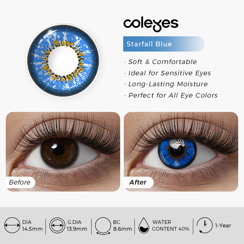 Coleyes Starfall Blaue Jahreskontaktlinsen für Cosplay mit Sehstärke