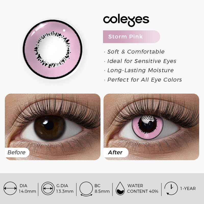 Coleyes Storm Pink – Farbige Cosplay-Kontaktlinsen mit Sehstärke für das Jahr