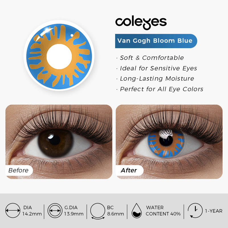 Coleyes Van Gogh Bloom Blaue Jahreskontaktlinsen mit Sehstärke für Cosplay